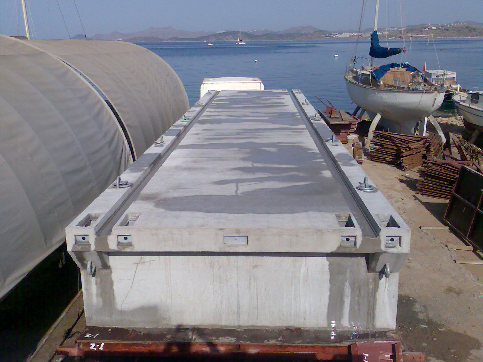 Μέχρι σήμερα, η παραγωγή πραγματοποιήθηκε από πλωτή μονάδα σκυροδέματος 1,0 τόνων σε 185,0 τόνους κυμαινόμενου κυματοθραύστη ως στοιχείο πλωτού συστήματος οπλισμένου σκυροδέματος. Στο πλαίσιο του ειδικού σκοπού, είμαστε σε θέση να σχεδιάσουμε και να κατασκευάσουμε οπλισμένο σκυρόδεμα κυλιόμενες σκαλωσιές μέχρι πλάτους 1,5 m.
